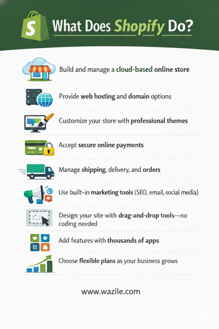 Shopify is a cloud-based ecommerce platform that allows you to create, manage, and scale an online store without needing advanced technical skills. It provides all the essential tools—hosting, design, payments, inventory, and marketing—so you can focus on growing your business instead of worrying about the tech side.